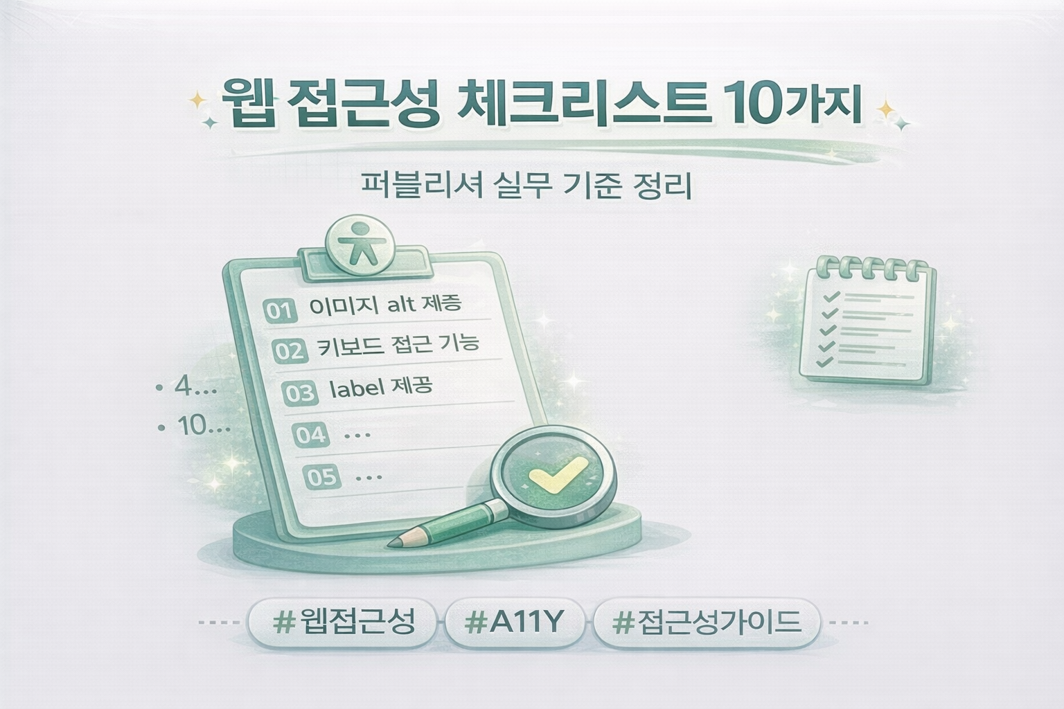 웹 접근성 실무 기준 정리aria-label vs sr-only 차이 (실무 기준) 웹 접근성을 고려한 퍼블리싱을 하다 보면aria-label 속성을 자주 사용하게 된다.하지만 많은 퍼블리셔들이 다음과 같은 고민을 한다.aria-label은 언제 사용해야 할까?label 태그 대신 써도 될까?sr-only와 어떤 차이가 있을까?이번 글에서는 aria-label을 언제 사용해야 하는지퍼블리싱 실무 기준으로 정리해보자. aria-label이란?aria-label은 ARIA(Accessible Rich Internet Applications) 속성 중 하나로요소의 이름을 스크린리더에게 제공하는 역할을 한다. 이 경우 화면에는 아이콘만 보이지만스크린리더는 다음처럼 읽는다."검색 버튼" 즉 aria-labe..